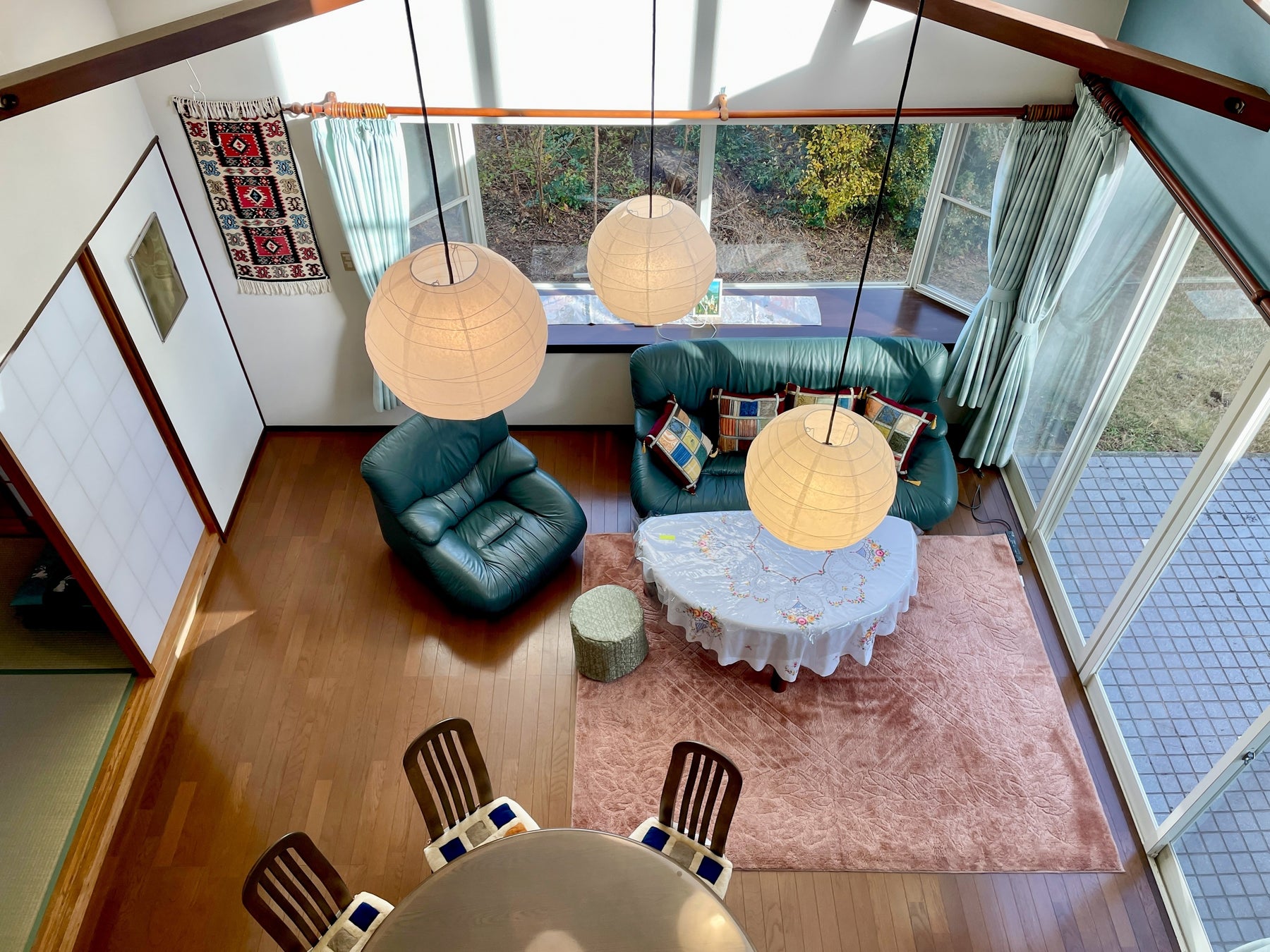 リビング&ダイニングスペースは吹き抜けで大きな窓を備えた明るく広々とした空間。