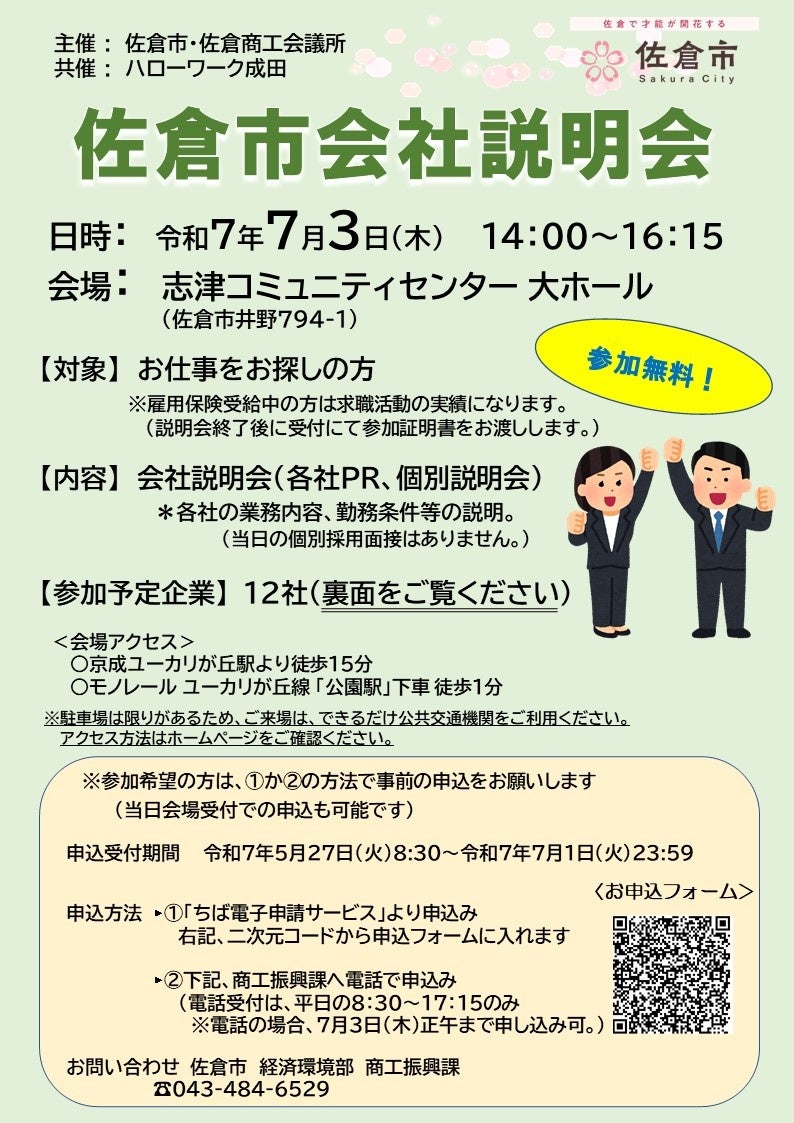 【千葉県佐倉市】「令和7年度佐倉市会社説明会」を開催(7/3)