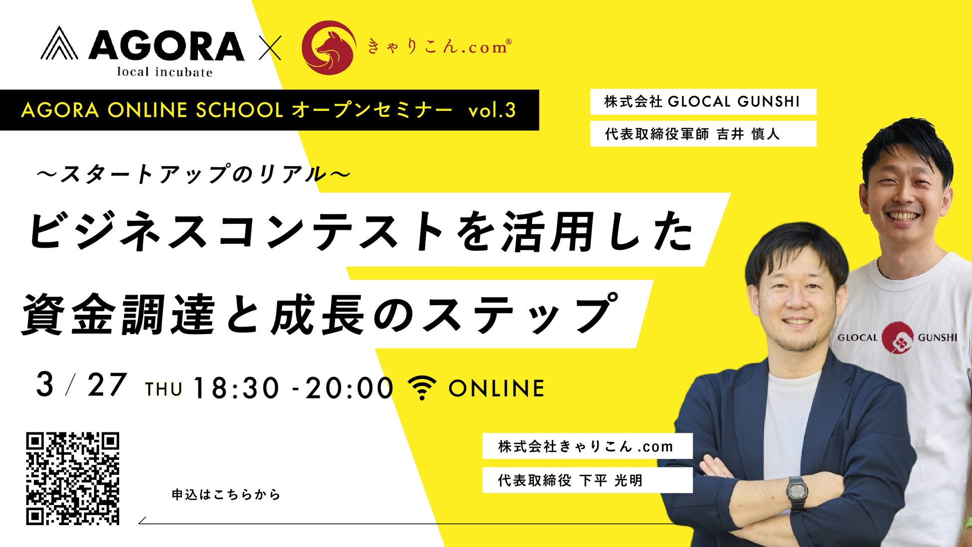 株式会社AGORAでは、2025年3月27日(木)に「ビジネスコンテストを活用した資金調達」をテーマにした創業WEBセミナーを開催します。