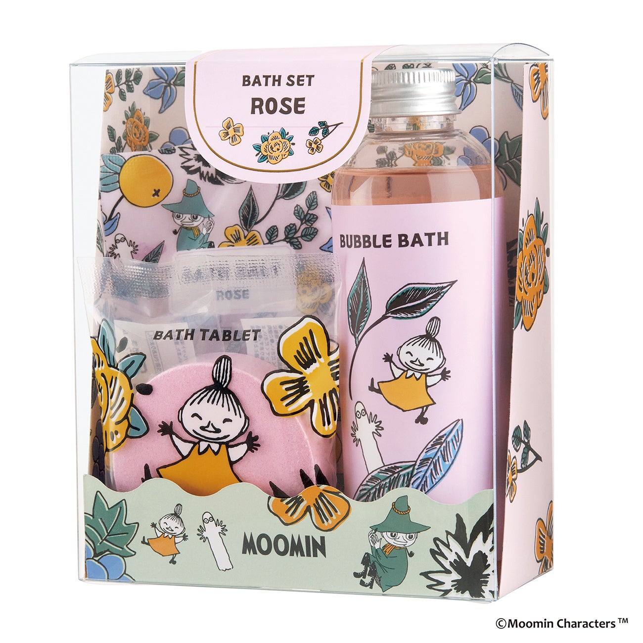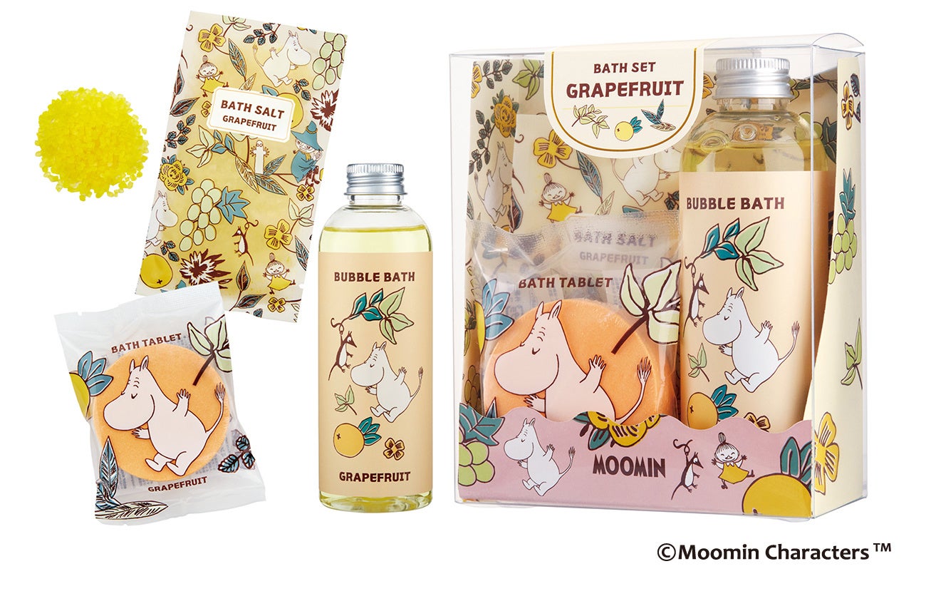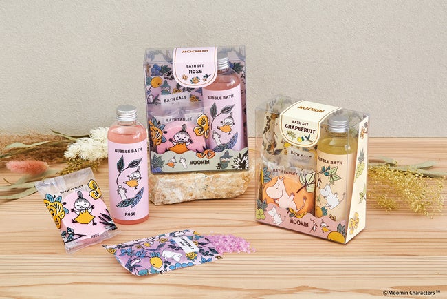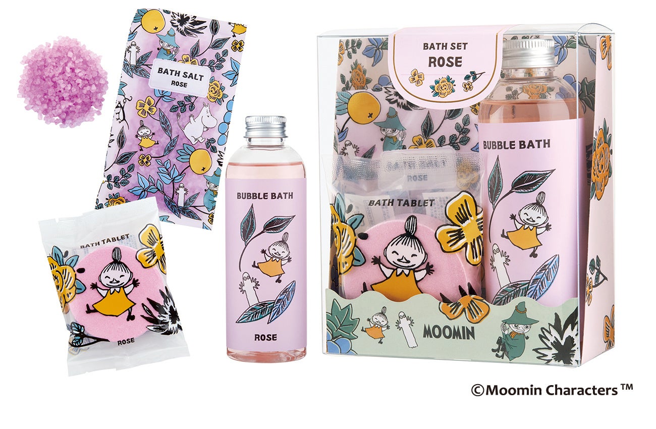 「ムーミン バスセット」は、その日の気分で選べるバスアイテムが3種類。泡風呂を楽しめるバブルバス、ぽかぽか温まるバスタブレット、バスソルトがセットになりました。