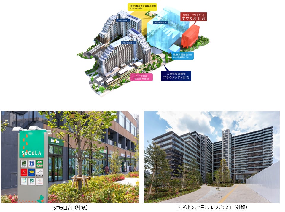 プラウドシティ日吉は野村不動産グループが推進する、「住」「商」「健」「学」の4つの機能を集積させた大規模複合開発です。安心・快適にお住まいいただけるレジデンス棟3棟・総戸数1,318戸の分譲マンションであるプラウドシティ日吉レジデンスI~III(一部分譲中)を中心として、地域密着型商業施設ソコラ日吉(運営中)、サービス付き高齢者向け住宅オウカス日吉(運営中)、街区内には横浜市立箕輪小学校も新設されています。また、エリアのコミュニティ形成を促進するグループ独自の取り組みとして、レジデンス棟内のフロアなどを活用してコワーキング・コラーニング活動などの各種イベントやシェアキッチン・子どもの一時預かり、スタジオ、コミュニティカフェなどの運営を行う活動拠点を設けています。