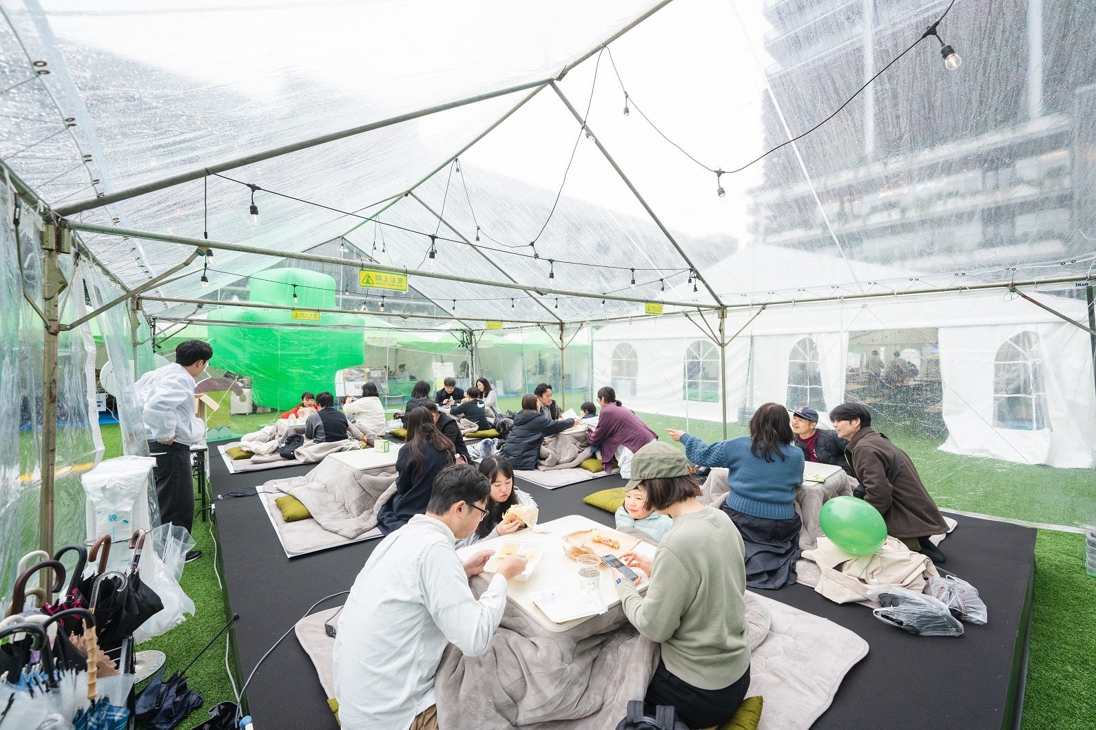 当日はあいにくの雨であったにも関わらず、「みんなでほっとマルシェ」には親子連れの皆さんを中心に、たくさんの方にご来場いただき、2日間で総勢2,980名の方が来場されました。会場では、おでんやスープ、ホットチョコレートなど、心も身体も温まるようなフード・ドリンクが提供され、こたつコーナーでも温まりながら、イベントを楽しまれている姿が印象的でした。
