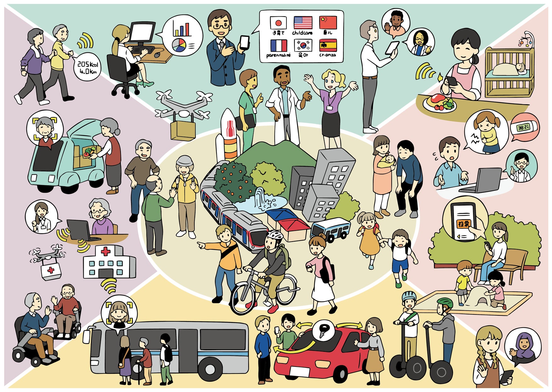 住民のつながりを力に、大胆な規制改革とともに先端的な技術とサービスを社会実装することで、科学的根拠をもって人々に新たな選択肢を示し、多様な幸せをもたらす大学・国研連携型スーパーシティの実現を目指すもの。