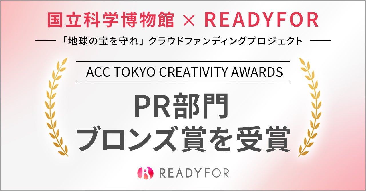 READYFOR株式会社は、日本最大級のクリエイティブアワード「2024 64th ACC TOKYO CREATIVITY AWARDS」において、2023年8月7日〜11月5日まで実施していたクラウドファンディングプロジェクト「地球の宝を守れ|国立科学博物館500万点のコレクションを次世代へ」で、PR部門のブロンズ賞を受賞いたしました。