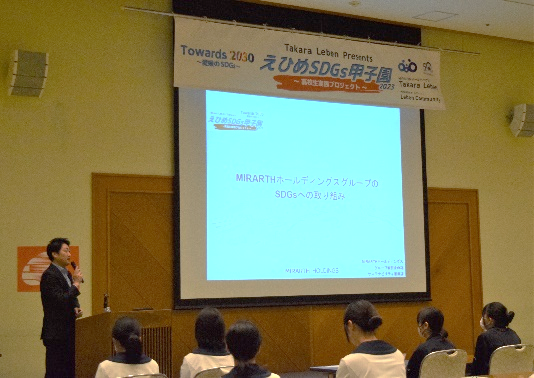 MIRARTHホールディングス株式会社(本社:東京都千代田区/代表取締役:島田和一)のグループ会社である株式会社タカラレーベン(本社:東京都千代田区/代表取締役:島田和一)及び株式会社レーベンコミュニティ(本社:東京都千代田区/代表取締役:中慎介)は、株式会社愛媛新聞社(本社:愛媛県松山市/代表取締役社長:土居英雄)とNPO法人 RES(愛媛県松山市/代表:森章)が主催する、愛媛県における高校生がSDGsを考える大会「Takara Leben Presents えひめSDGs甲子園2023 ~高校生実践プロジェクト~」に特別協賛しています。