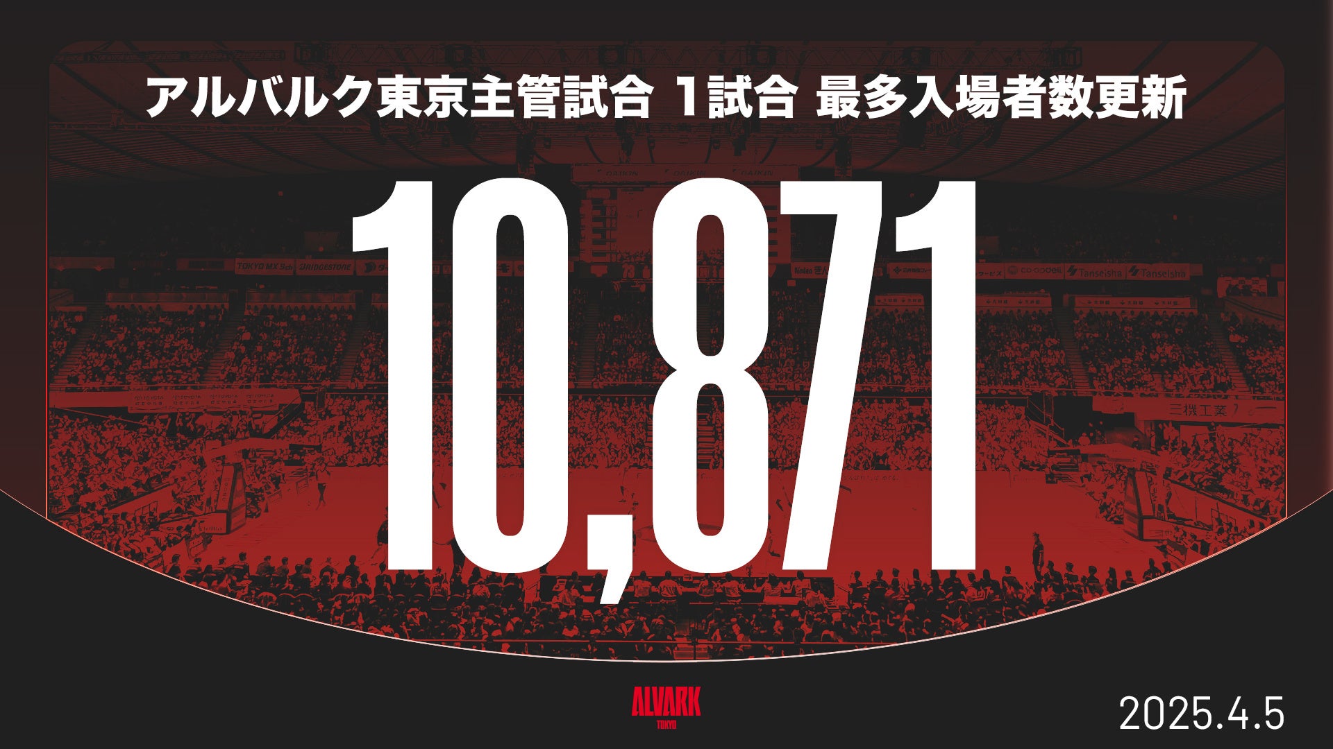 これにより、2024年4月28日(日)に2023-24シーズン 第35節 群馬クレインサンダーズ戦(@国立代々木競技場第一体育館)で記録した10,513名を上回り、アルバルク東京主管試合における最多入場者数を更新しクラブ新記録を樹立しましたので、お知らせいたします。