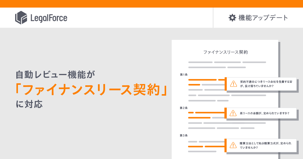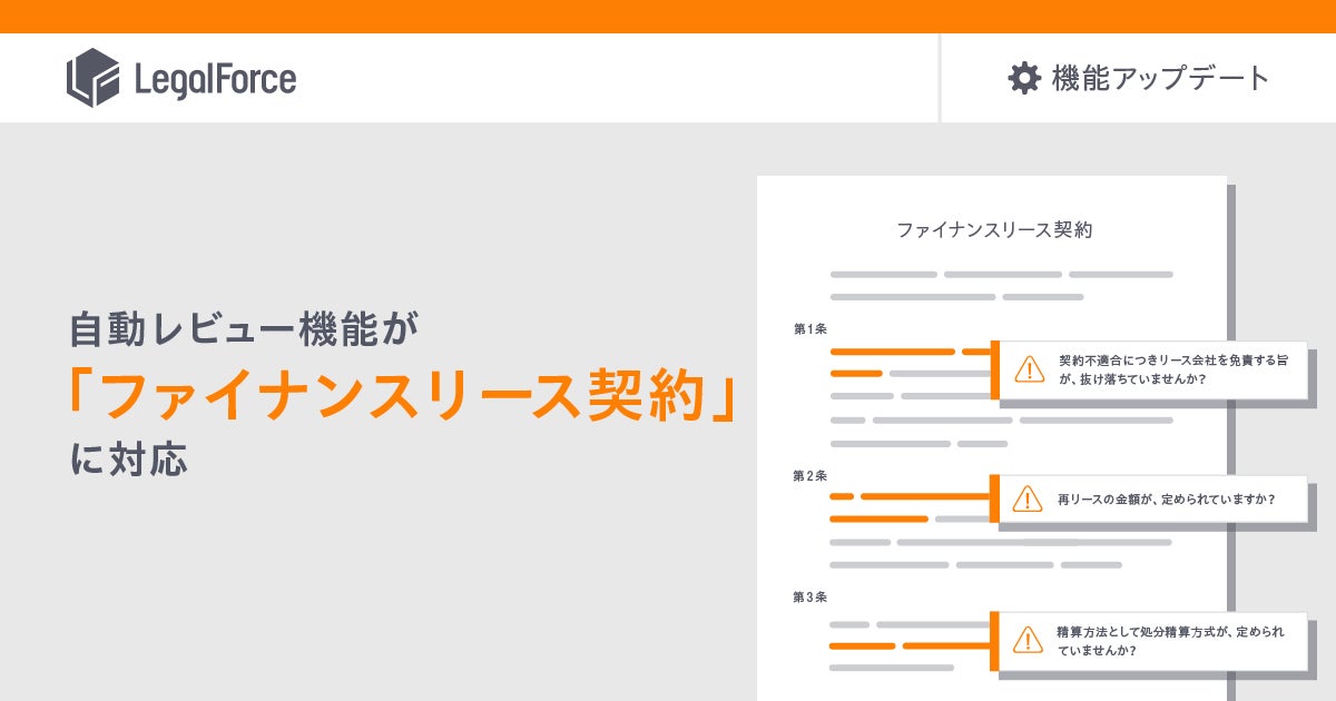 AI契約審査プラットフォーム「LegalForce」、自動レビュー機能が和文の「ファイナンスリース契約」に対応開始