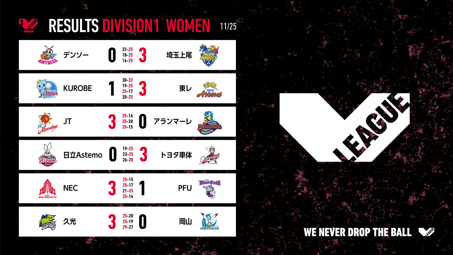 攻撃力の高さを見せつけたJTが無傷の9連勝 写真は11月11日 対KUROBE戦