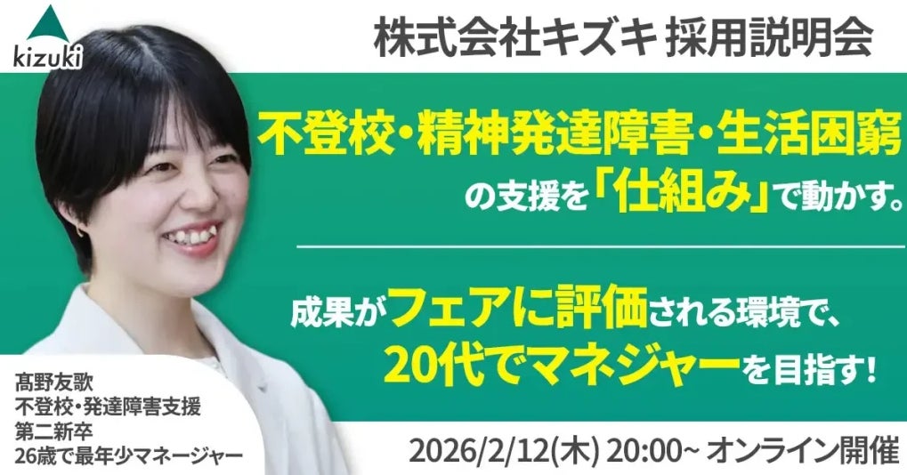 不登校・精神発達障害・生活困窮の支援を「仕組み」で動かす。成果がフェアに評価される環境で、20代でマネジャーを目指す! 株式会社キズキ採用説明会
