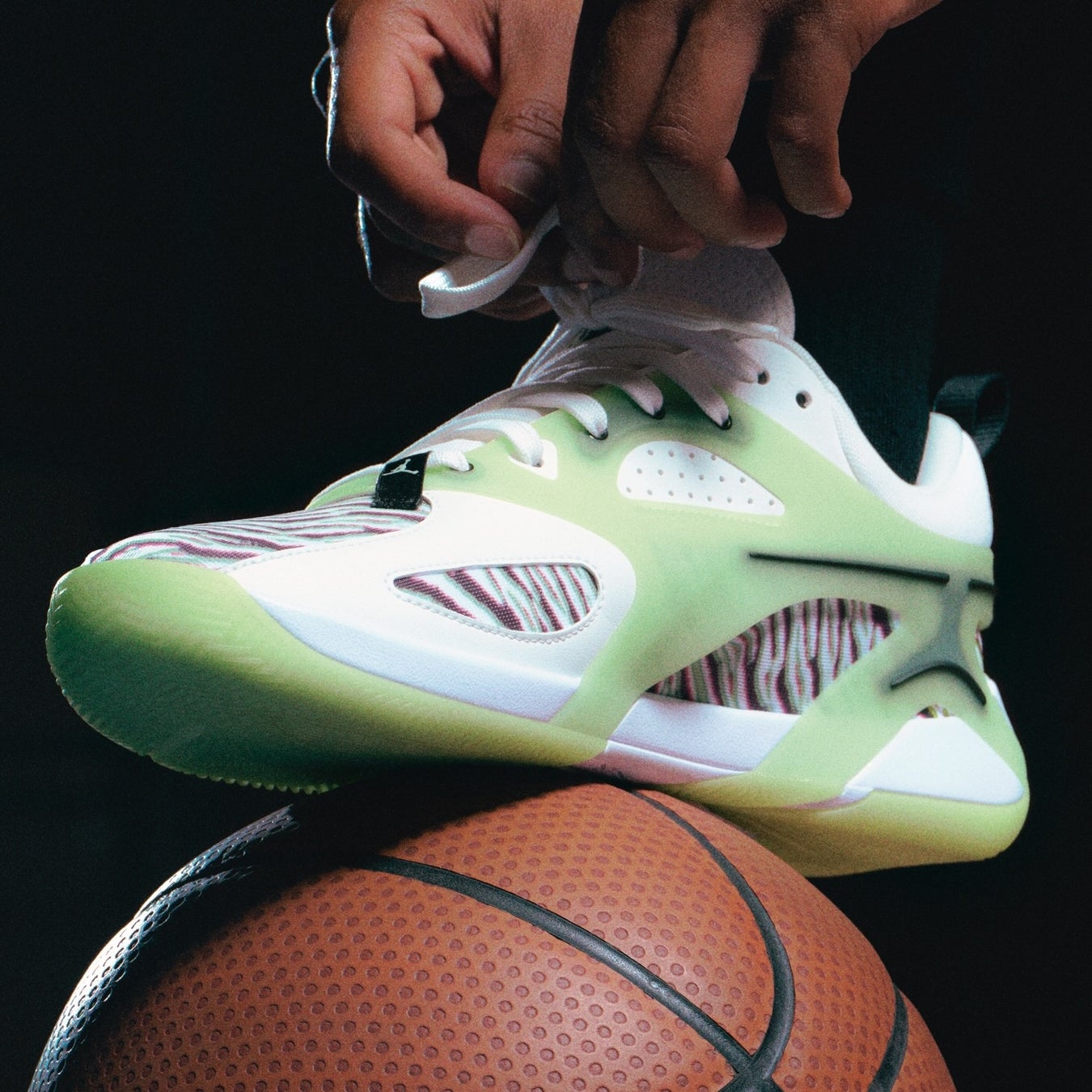 ジョーダンシューズ新シリーズとして、女性バスケットボール選手の意見を取り入れ、男女問わずあらゆる人のためにデザインした機敏な動きと地面との一体感を追求したシューズ。