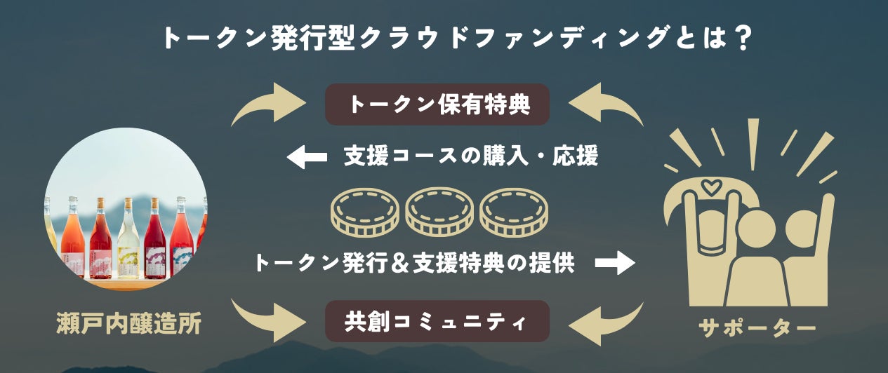 本プロジェクトでは、瀬戸内を旅する熟成ワインプロジェクトの「コミュニティトークン」を発行し、プロジェクト支援を募る、次世代型クラウドファンディングの仕組みを活用します。