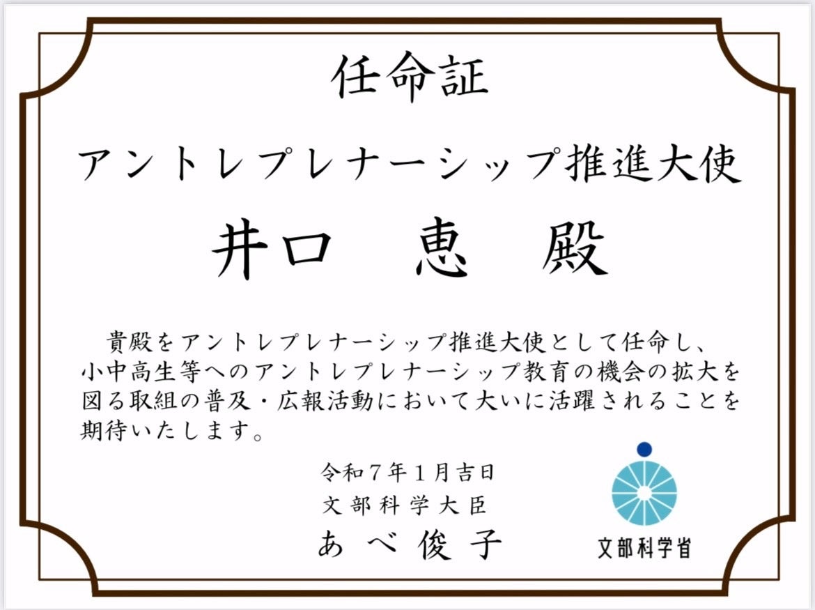 株式会社Kanatta 代表取締役社長 井口恵が文部科学省「アントレプレナーシップ推進大使」に就任