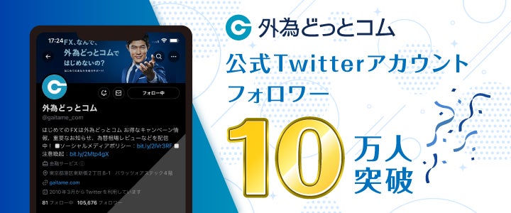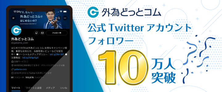 【外為どっとコム】外為どっとコム公式Twitterアカウントがフォロワー10万人を突破!