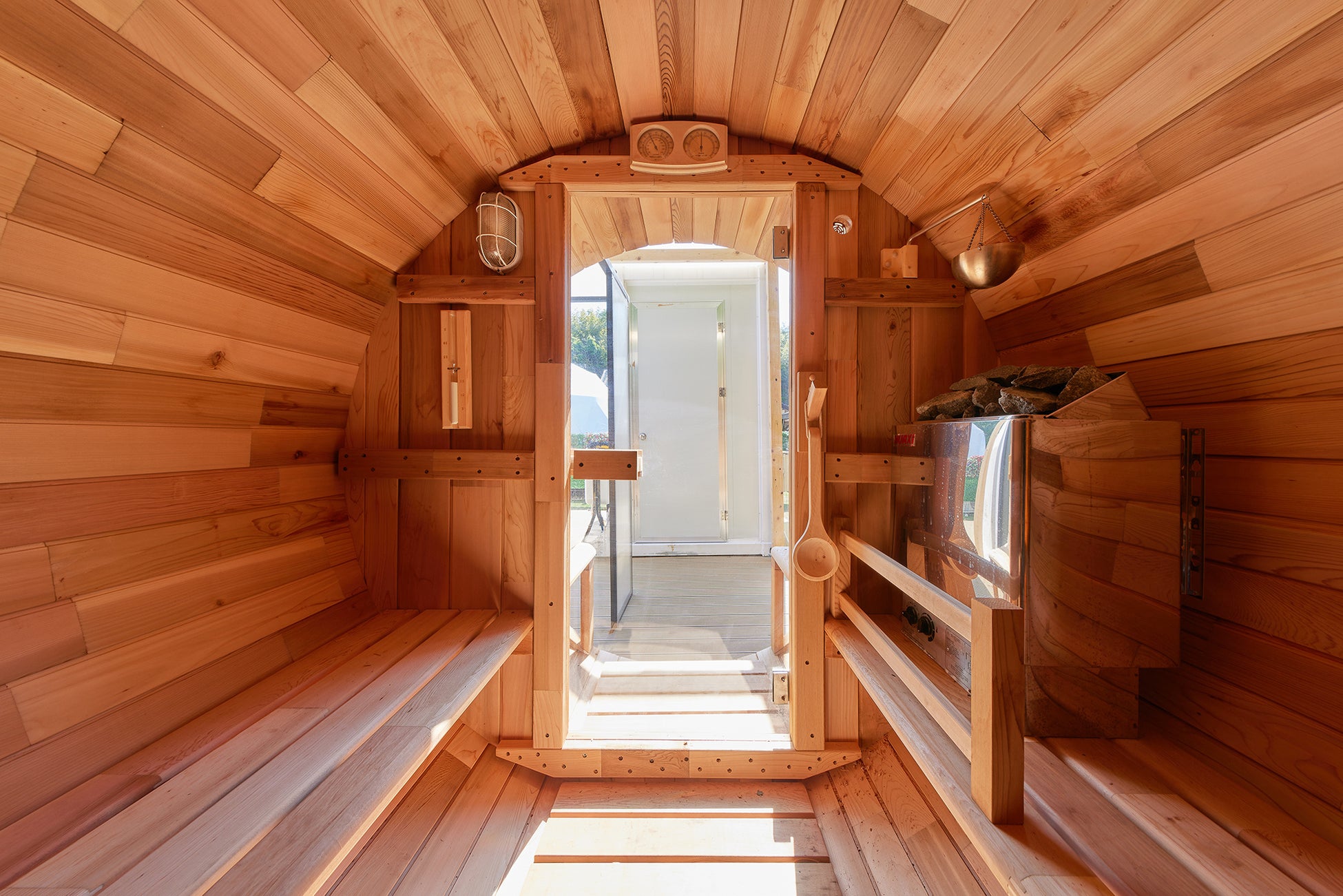 4.全棟本格バレルサウナ備え付け。専用サウナでととのう“サウナグランピング”