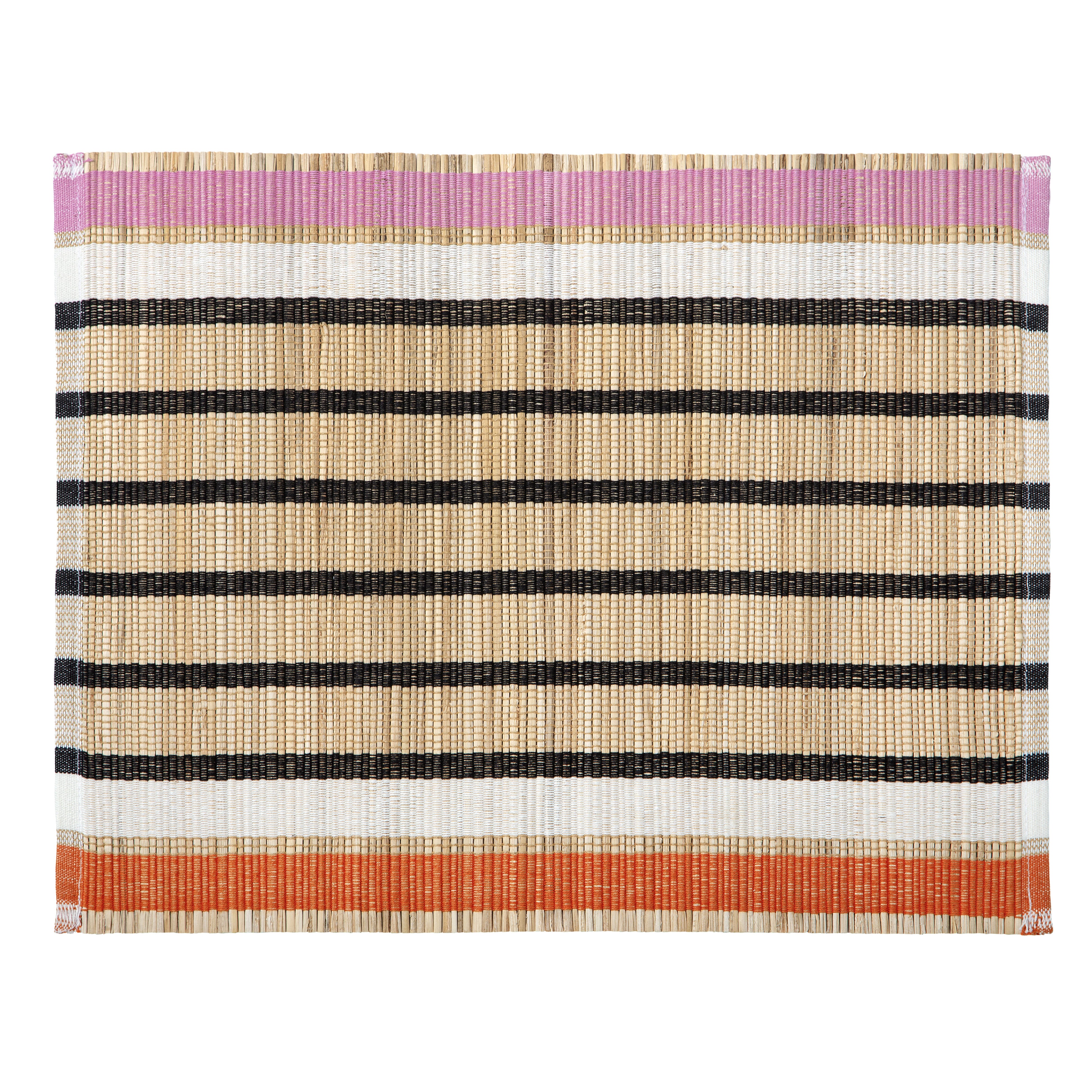 素朴なバナナ繊維と柔らかな綿を組み合わせて鮮やかなストライプをつくり出した手織りのランチョンマットで、テーブルコーディネートにナチュラルで落ち着いた雰囲気をプラスしましょう。 テーブルの表面傷や汚れから保護し、食器やカトラリーを置くときの音を和らげるのにも最適な、個性のある工芸品です。