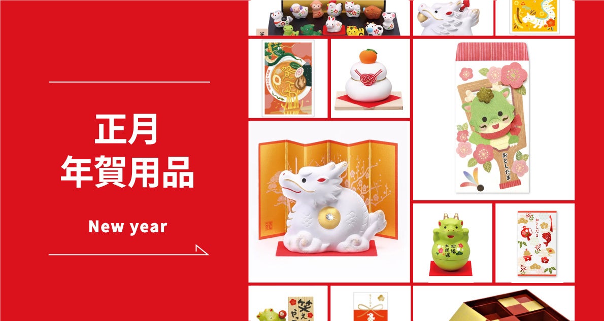 2024年は辰年。新たな1年を迎える準備はできていますか?2024年がいい1年となるようしっかり準備をして新年を迎えましょう。年賀状に、お飾り、ポチ袋。お正月の必需品をご用意しております。