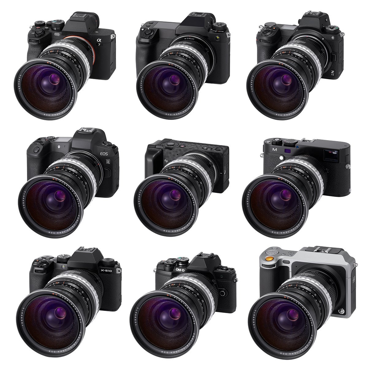 ・マウントパーツを交換することで、各メーカーのミラーレス機に装着可能