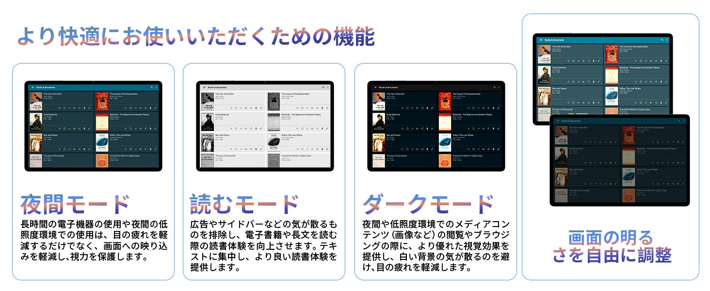P40HDは新しい外観デザインコンセプトを採用し、信号オーバーフロービットを金属ボディの中に入れて、全体をより滑らかに仕上げました。10.1インチのIPSディスプレイを搭載し、1920×1200の解像度を備えて、超広視野角を持ちます。16:10ゴールドスケールと合わせて、ドラマや映画の観賞にも、ゲーム体験にも非常に快適です。ブルーライトカットモード、読書モードなどと一緒に使用することで、長時間使用しても疲れません。