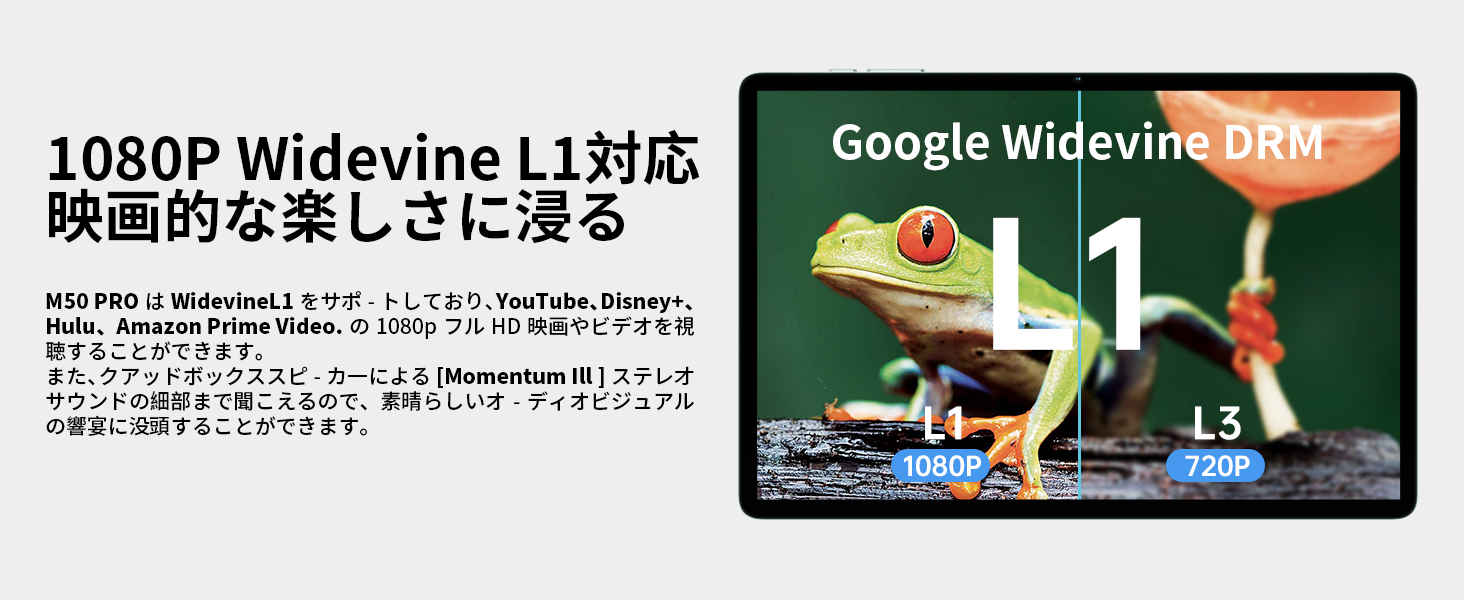 10.1インチの「M50 Pro」は、革新的なTDDI統合タッチ技術のパワーを採用し、48x30マトリクスタッチ カバレッジと120Hzのタッチ サンプリング レートによる比類のない密度を提供します。ディスプレイ対ボディ比率が 83% で、解像度は1920×1200のFHDです。T-Colour 2.0カラー最適化技術と組み合わせることで、ブルーライト放射を抑えながら、画面の色をより鮮やかにし、細部をより豊かにします。