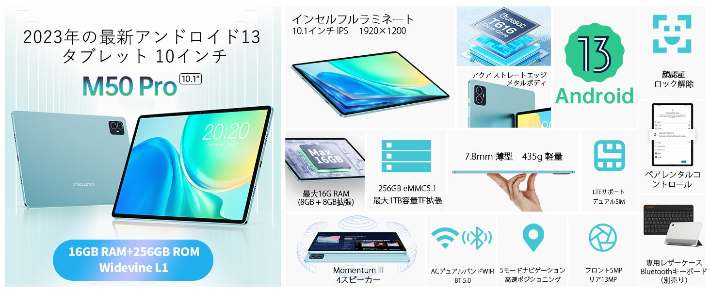 【激安】Amazon人気タブレット「Teclast M50Pro】と16GB大容量「P40HD」限定セール開催中、最大32% OFF!Android 13/Widevine L1/GPS機能サポート