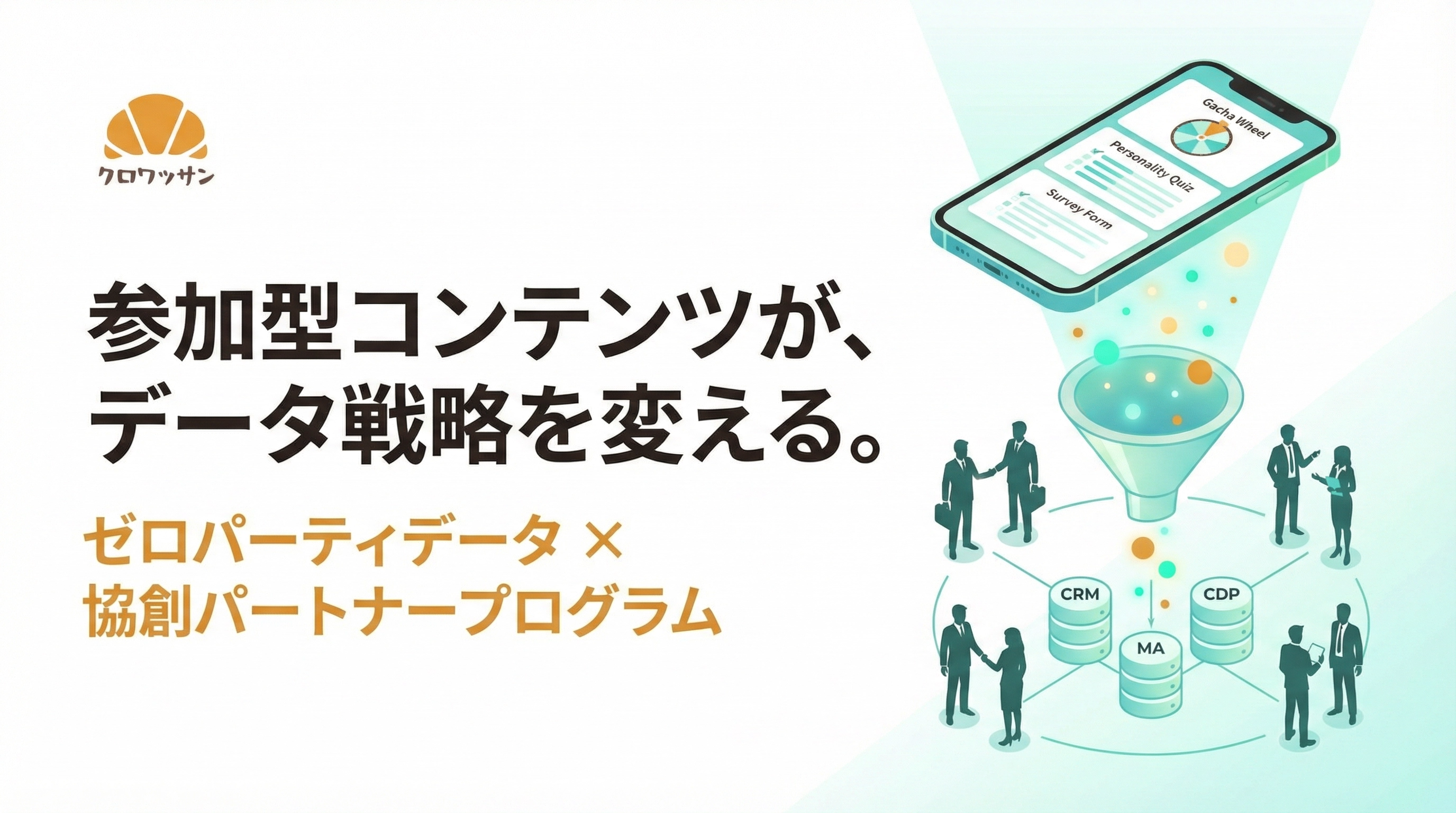 ノーコードでオンラインガチャ・診断・アンケートを作成できるマーケティングツール「クロワッサン」を開発・提供する株式会社on the bakery(本社:神奈川県横浜市、代表取締役:井戸 裕哉)は、2026年4月11日、「クロワッサン」をゼロパーティデータの取得・流通を支える基盤として再定義し、その活用を業界横断で具体化するための協業枠組み「クロワッサン 協創パートナープログラム」を始動しました。