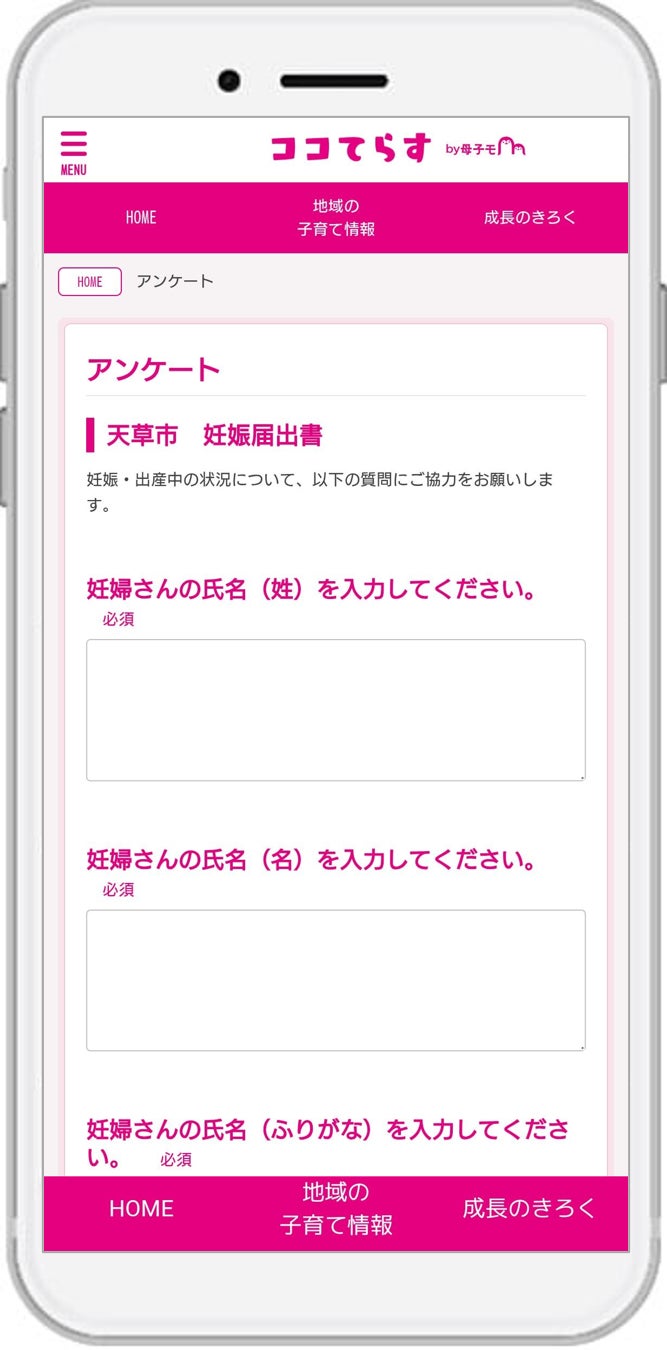 このたび、母子手帳アプリ「ココてらす」の機能を拡充し、妊娠された方が24時間好きな時間に妊娠届出および母子健康手帳交付の予約や問診票の回答をできるようにしました。