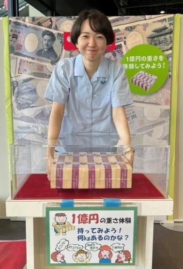 新一万円券拡大パネルと写真を撮ろう!新日本銀行券に使われている技術が学べるパネル展示や、「持てるかな?一億円レプリカ体験コーナー」も。