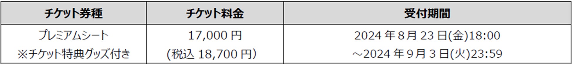 【会場チケット】 プレミアムシート 18,700円(税込)指定席 11,000円(税込)
