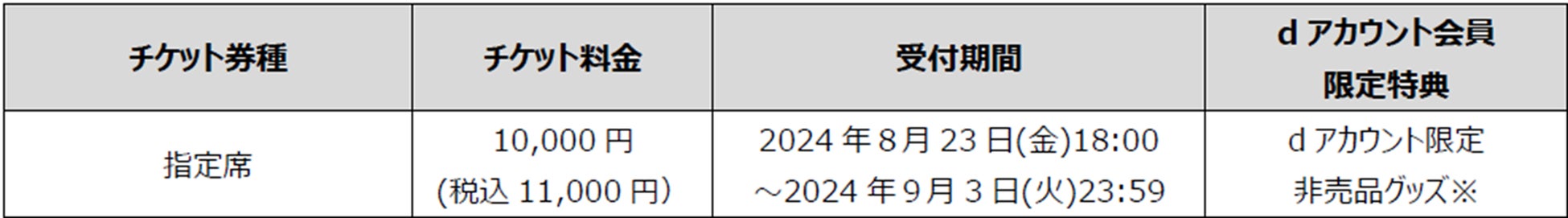 ※こちらのdアカウント会員指定席プレオーダーチケット(優遇抽選)は当選を確約するものではございません。