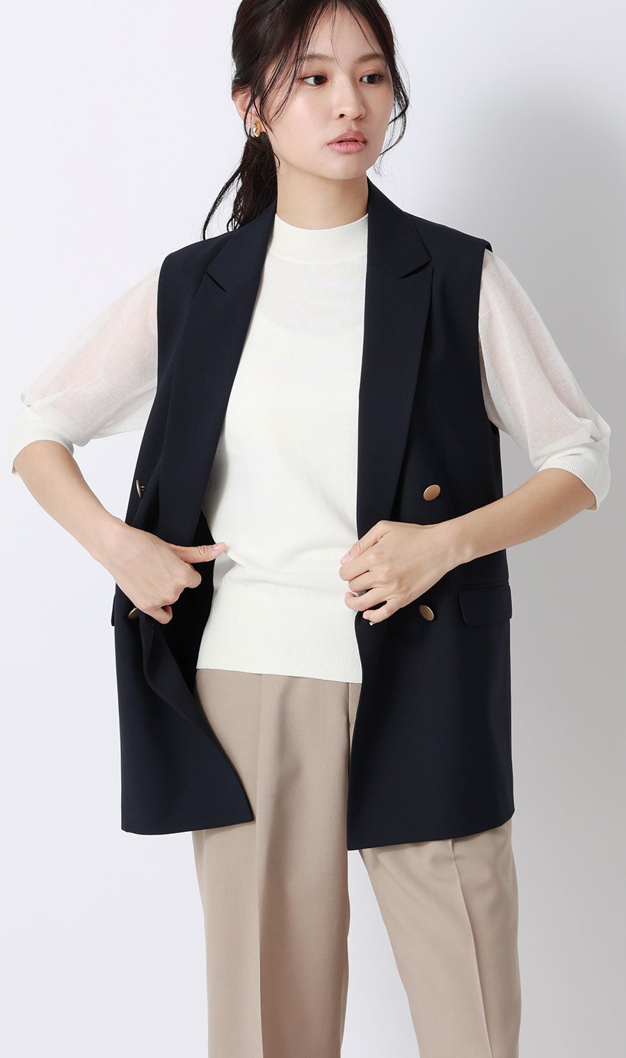 一枚でも透けを気にせず着用可能、夏の上品スタイルに「抜け感」と「きちんと感」を両立させた『袖だけシアーニット』が新登場