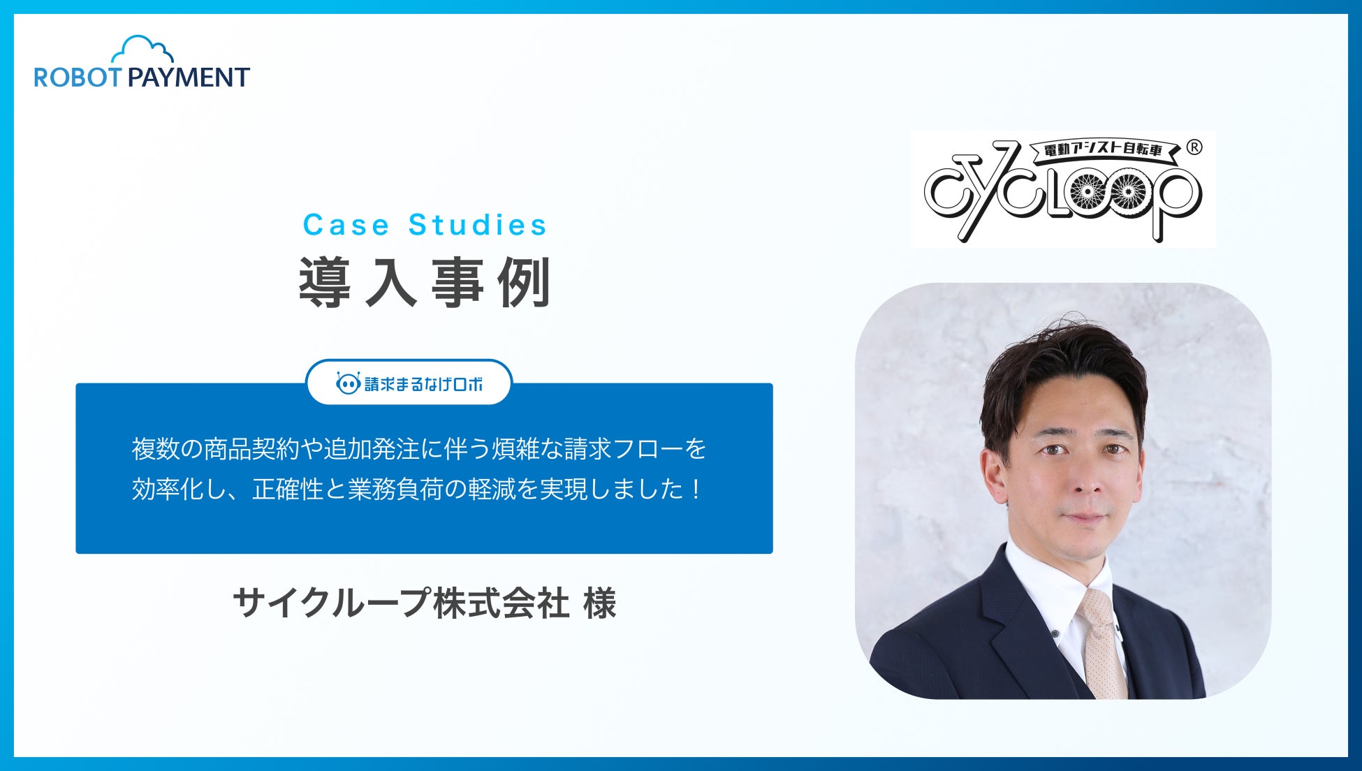 株式会社ROBOT PAYMENT(本社:東京都渋谷区、代表取締役:清久 健也、証券コード:4374、以下「ROBOT PAYMENT」)は、企業間請求代行サービス「請求まるなげロボ」が、サイクループ株式会社の導入事例を公開したことをお知らせします。
