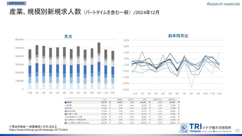 株式会社ツナググループ・ホールディングス(本社:東京都中央区、代表取締役社長:米田 光宏)を母体とする、多様な働き方の調査研究機関「ツナグ働き方研究所(拠点:東京都中央区、所長:大野 博司)」は、官公庁などが発表する労働市場関連のデータをキュレーションしつつ、分かりやすくまとめた「労働市場データレポート」を毎月発表しています。今回は1月下旬に発表された最新データをもとに2024年12月度のレポートについて、とりまとめましたのでご報告いたします。