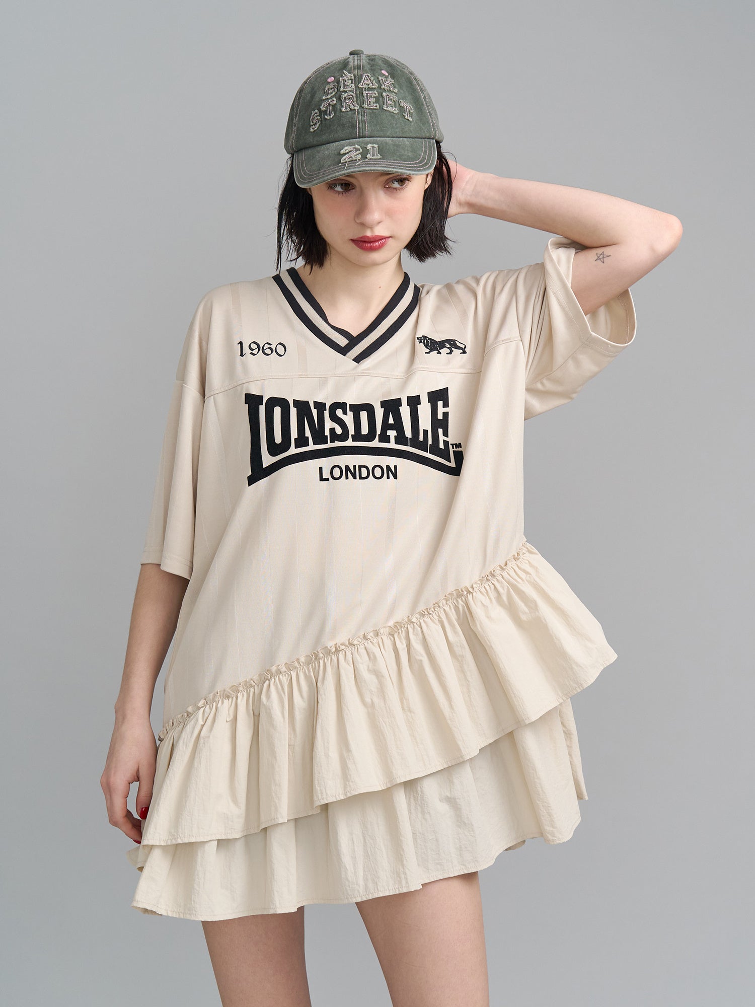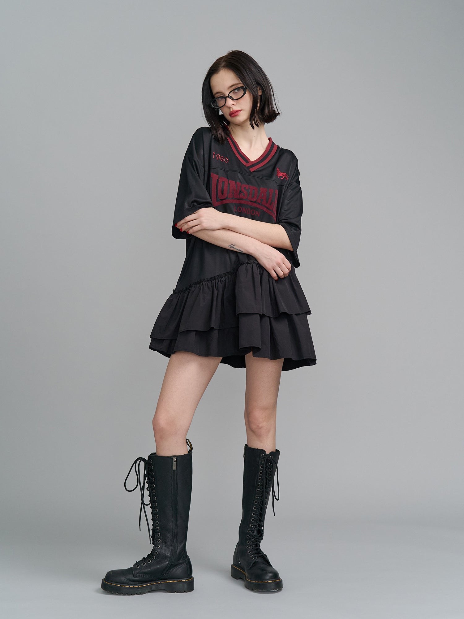 本コラボレーションでは、LONSDALEのアイコニックなロゴやユニオンジャックを落とし込み、スポーティーさにガーリー&ストリートのエッセンスを融合した全4型を展開。オーバーサイズフーディーやレース切り替えのトラックジャケット、ユニフォームライクなチュニックワンピース、加工感のあるデニムキャップなど、デイリーに取り入れやすく存在感のあるラインナップを提案します。