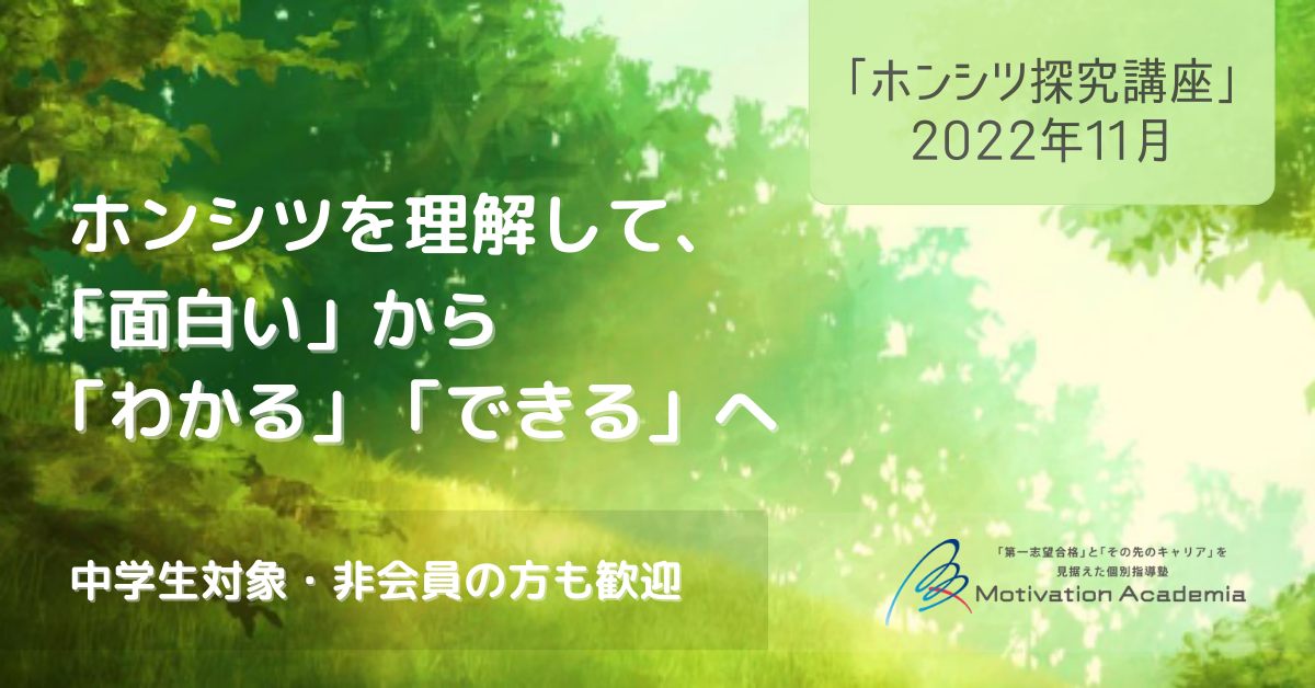 今回の単元が苦手な方も、勉強法に不安を感じられている方も、この機会にホンシツを理解する学習法を学びましょう。