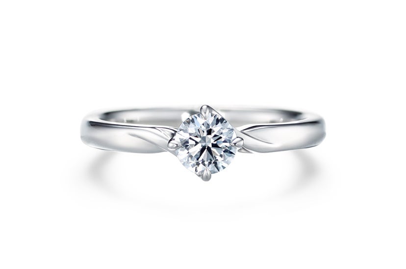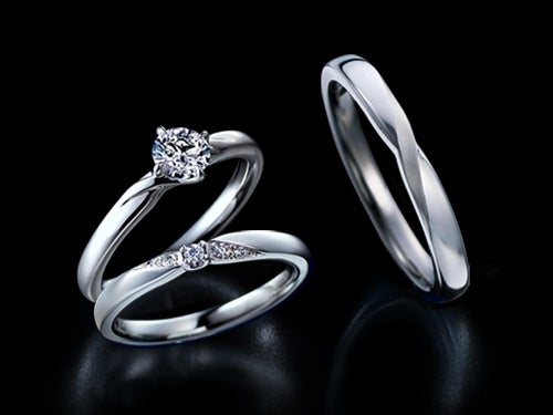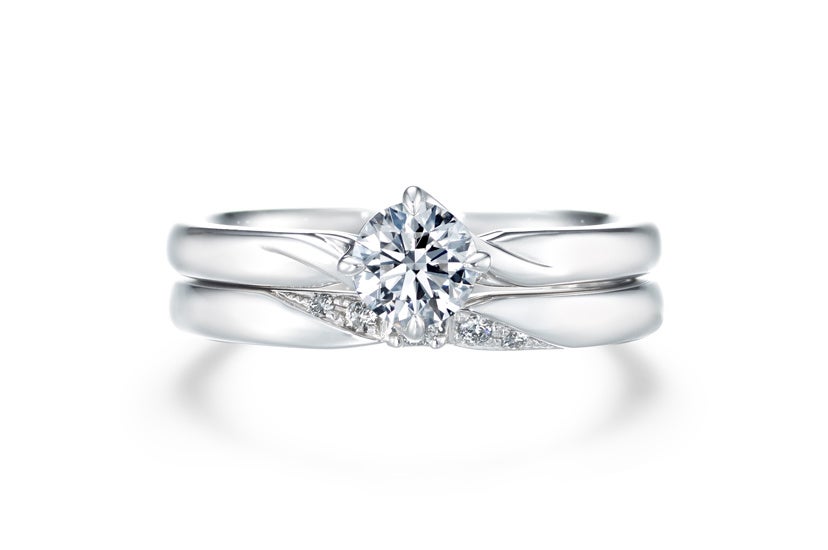 引き寄せる幸運を表現したエンゲージリング。二人が運命的に惹かれたダイヤモンドの両サイドに流れるプラチナの光がより一層輝きを美しく魅せます。