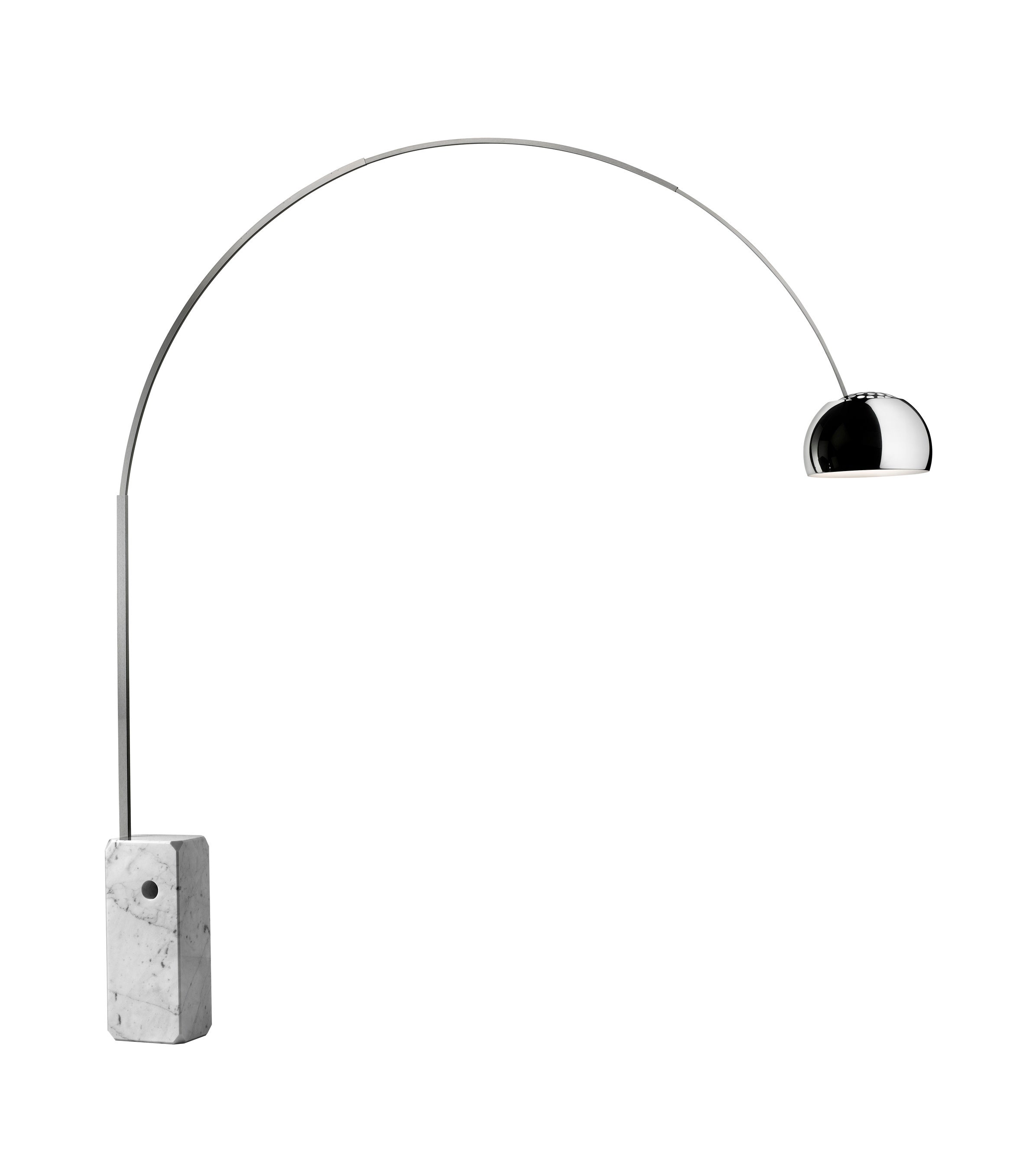 1962年発表、アキッレ&ピエール・ジャコモ カスティリオーニ兄弟による大きな弧を描くオブジェのような「ARCO」は、世界中で愛用されているフロス社を代表する近代照明デザインの名作です。アルコとは「アーチ」を意味し、重厚な大理石ベースから美しいステンレスのポールが華麗なアーチを描きます。