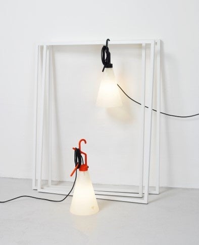 取手はフックとしても使用することができ、テーブルやデスクの上に吊り下げてペンダントライトとして、また壁に引掛けてブラケットライトとして、さまざまな用途に手軽にご使用いただけます。