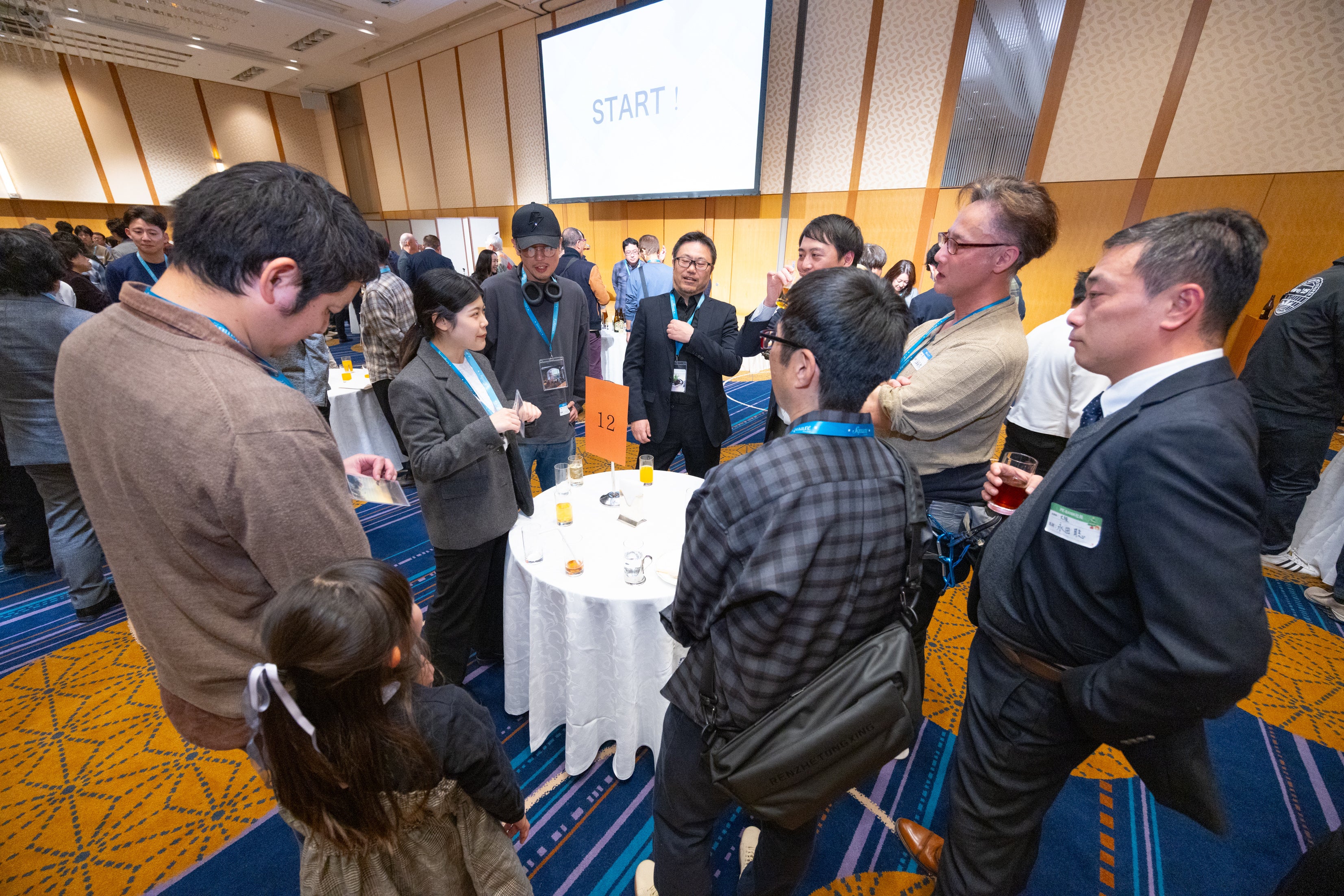 当日は社員、プロエンジニア、そのご家族を含む約250名が参加し、「共創 〜Create it, together.〜」をテーマに、対話型の交流コンテンツを通じてプロエンジニア同士およびPE-BANK社員とのつながりを深める温かな場を提供しました。交流コンテンツでは、スクエア合同会社が提供する交流ゲーム「LINK×LINK」を実施し、初対面同士でも自然に会話が生まれるきっかけを創出しました。