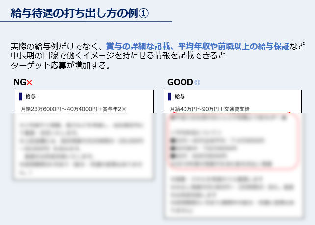 ・求人票の具体的なNG/OK例が紹介されており、大変参考になりました。