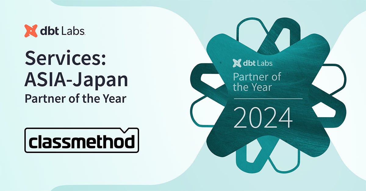 クラスメソッド株式会社(本社:東京都港区、代表取締役:横田 聡、以下「クラスメソッド」)は、クラウド型データウェアハウスに特化したデータ変換ツールを提供するdbt Labs, Inc. から、前年度のサービス拡販と技術支援にもっとも貢献したパートナー企業として「Partner of the Year 2024 – Asia/Japan」を受賞しました。