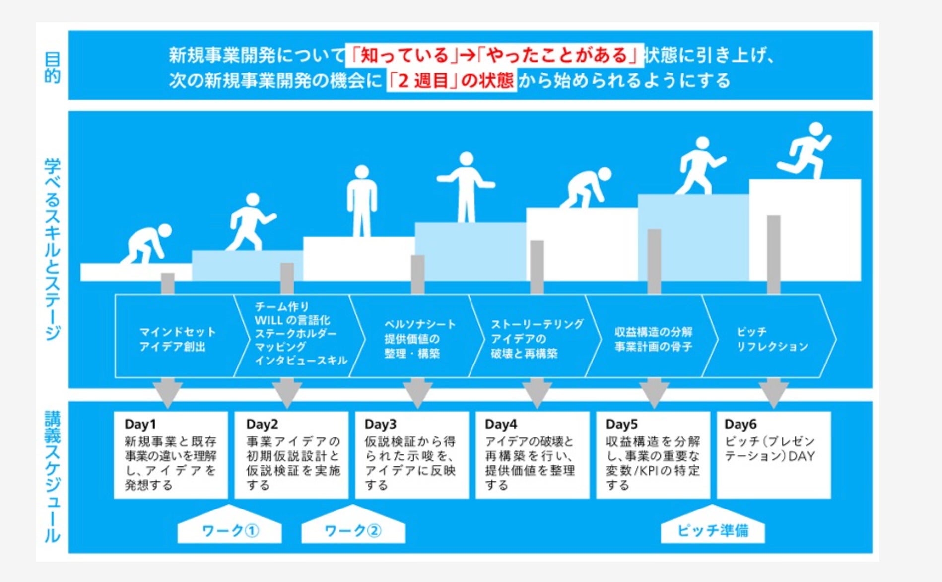 また、働き方改革や人材流動化に伴い、既存組織内での新規事業推進チームの経験値格差が顕在化。経営層から若手メンバーまで、一貫した実践スキルを体系的に習得できるプログラムへのニーズが高まっています。