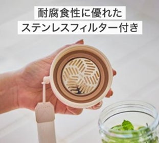 耐腐食性に優れたステンレスフィルターを搭載。フィルターが果肉や種をキャッチするので、フルーツウォーターやハーブウォーターを手軽に楽しめます。