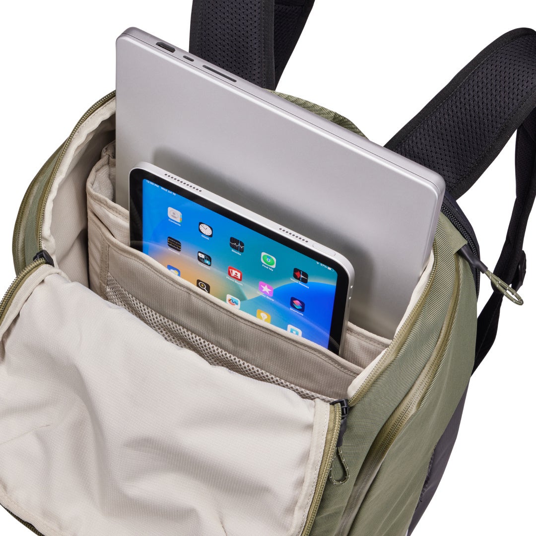 ▲厚⼿パッド入り保護ポケットにPCとタブレットを収納。