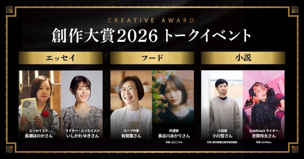 今回は出版社・テレビ局など34のメディアが選考に参加。豪華ゲストとの関連イベントも開催を予定しています。開催期間中には、エッセイストの長瀬ほのかさん・ライター/エッセイストのいしかわゆきさん、スープ作家の有賀薫さん・料理家の長谷川あかりさん、小説家の小川哲さん・QuizKnockライターの志賀玲太さんを招いたトークイベントも開催します。