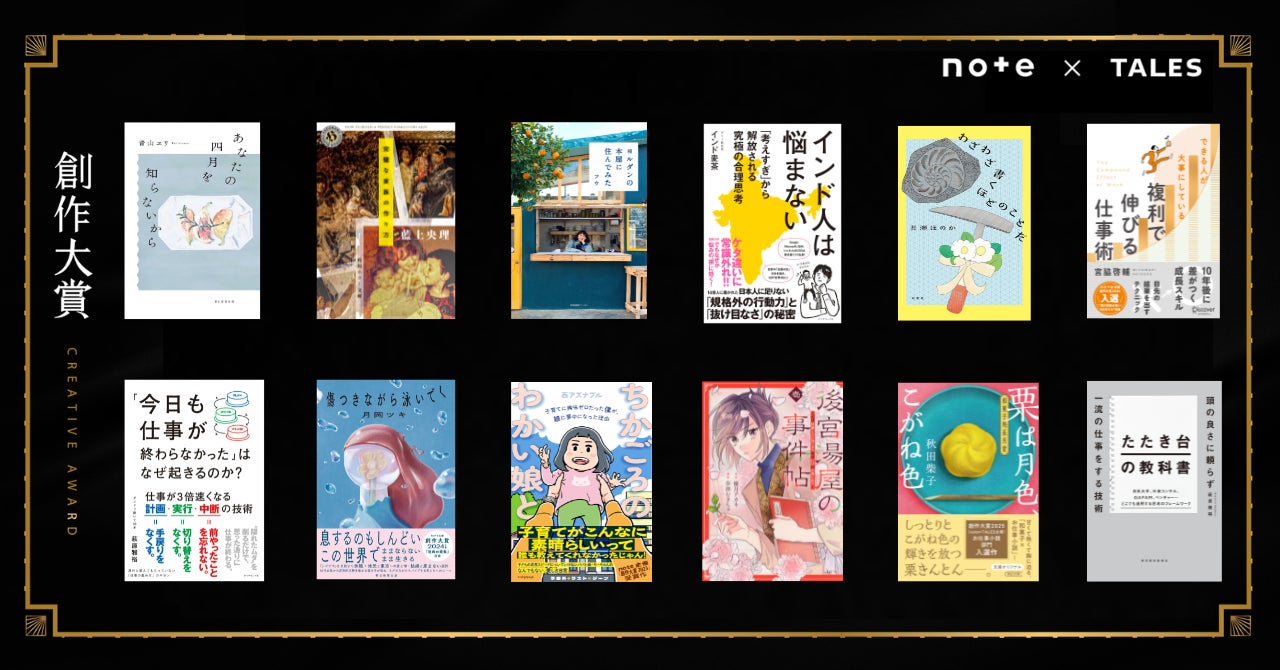 未来のスターとなるクリエイターを発掘する、noteとTALESが共同主催する日本最大級の創作コンテストです。これまで累計173,387作品の応募があり、書籍化・映像化・連載・舞台化など32作品のメディア化を実現しました。クリエイターと多数のメディアが一堂に会する、プロデビューへの登竜門です。