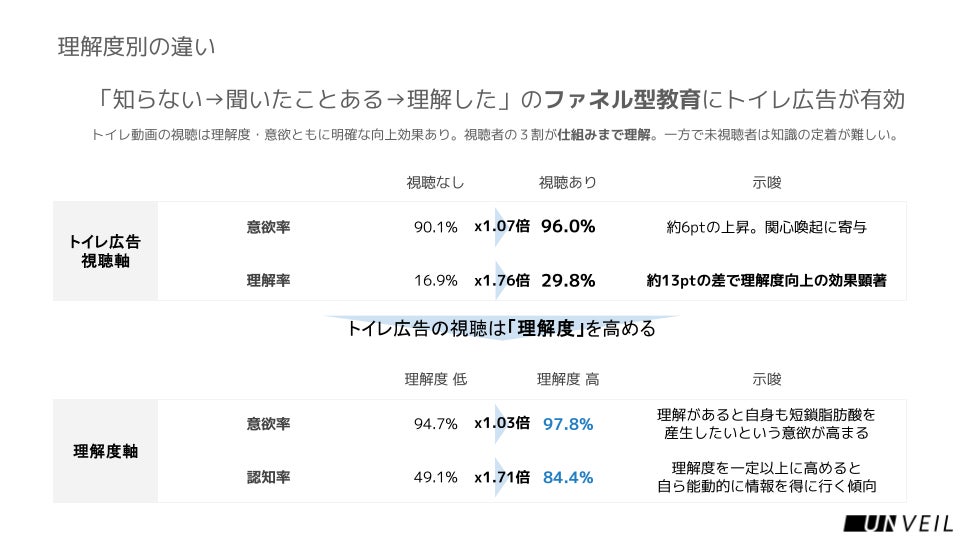 トイレ広告「アンベール」の活用で「短鎖脂肪酸」の理解度が大幅向上 ~ 認知率15.5ポイント向上、理解度は3倍に!効果的な理解浸透を実証 ~