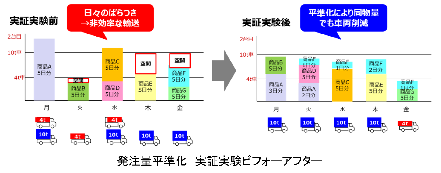 ■実証実験「小売業の発注スキームの転換から車両削減・物量平準化の実現」の概要