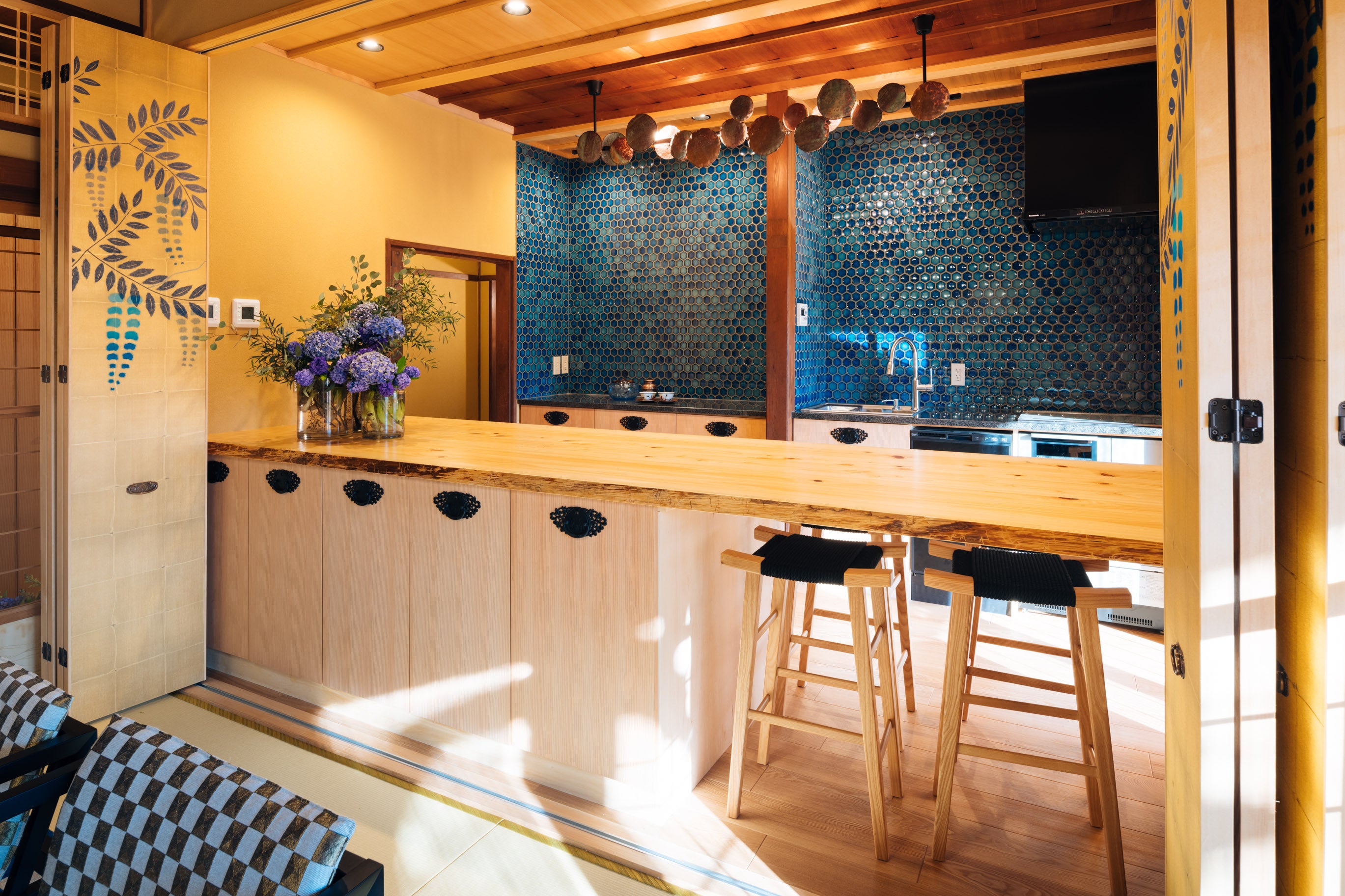 当施設は、築100年という伝統を残しながら快適に過ごせるようにリノベーションが施され、各所に散りばめられた伝統技術が生きる建築意匠や、洗練されたデザインの調度品、アートが特徴的です。 リビング・ダイニングスペースにはインテリアデザイナーこだわりの家具が配置され現代的でありながら和の雰囲気を演出しています。自分の別荘のようにくつろぎながら、美術館のような上質な文化を体験できる宿泊施設となります。