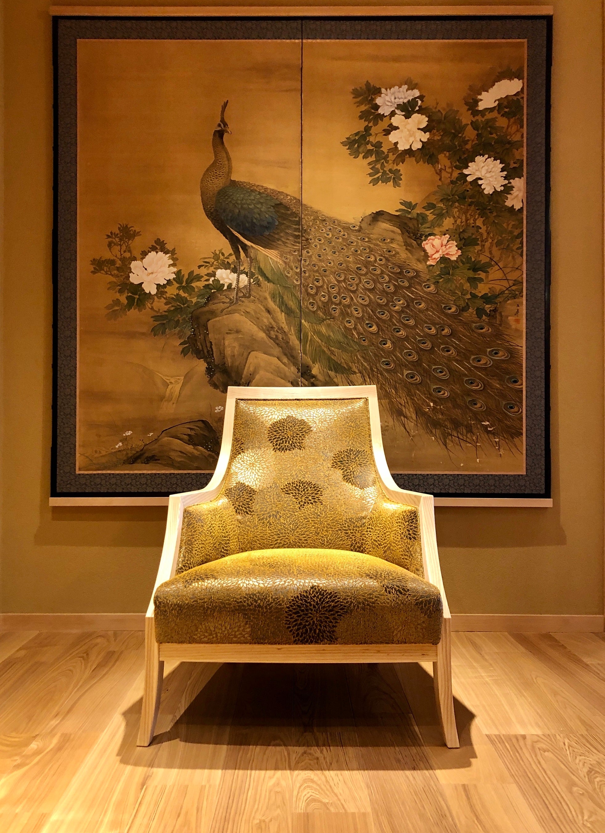 コンテンポラリーな家具と伝統工芸品やアートが入り混じる、伝統と革新が融合するデザイン。木構造と建具をそのまま残し、雪見障子を空間の結界とすることで、開放感溢れるリビングに。