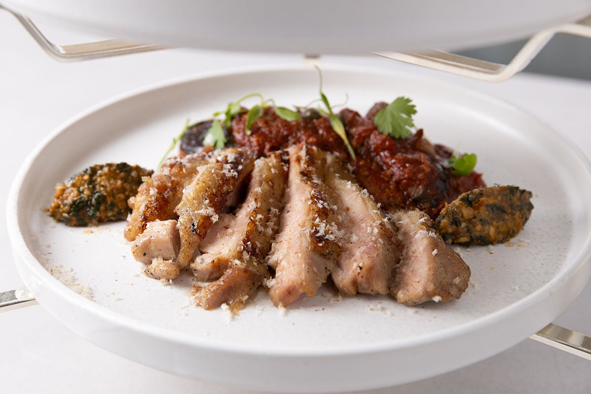 〇淡路どり網焼き、木の芽香るトラパネーゼ